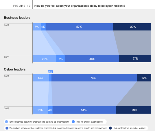 One of the issues could be a possible difference between views on Cyber Resilience between Business Leaders and CISOs. A recent report by the World Economic Forum showed a comparative difference between these two groups in their organisations cyber resilience capability. Whereas CISOs saw a definite improvement Business Leaders were not so sure.