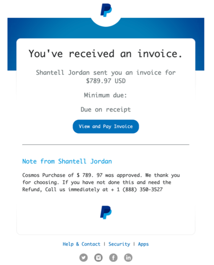The most common ways to get people to call are by either sending them a text message or an email tricking them into calling. The screenshot below shows a phishing email that is trying to get the recipient to call the phone number. Once they cyber attackers get the victim on the phone, they will be tricked out of their PayPal password.
