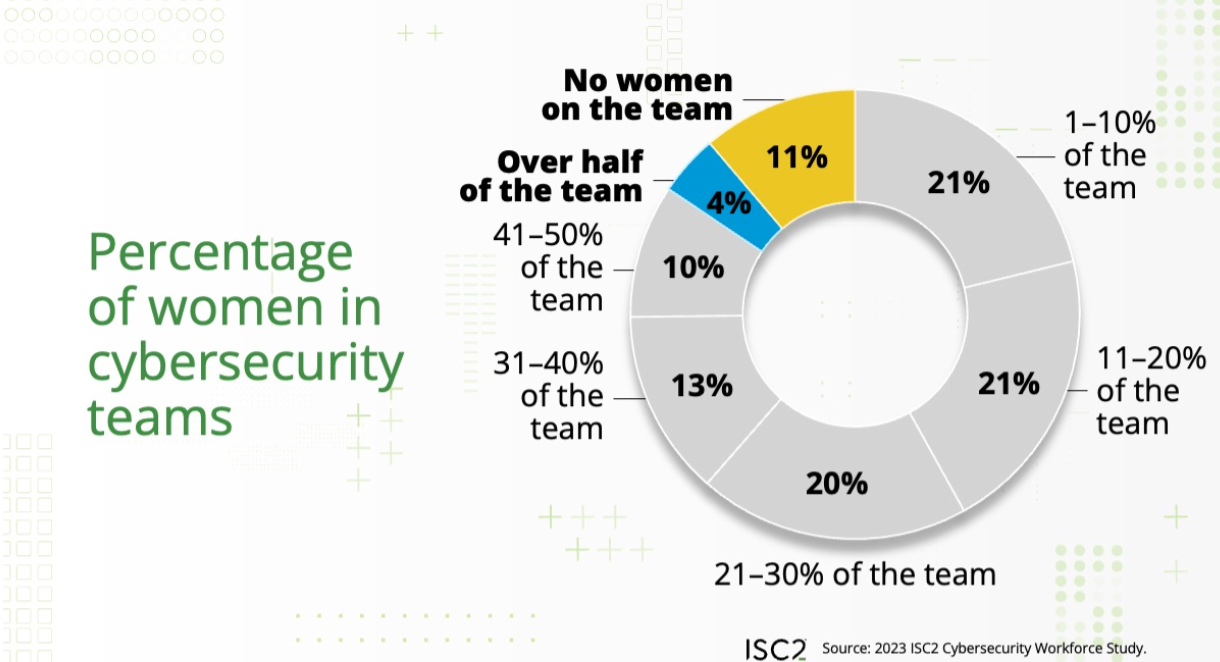 ISC2 estimated that 20% to 25% of people working in the cybersecurity field are women, with that number expected to rise to 35% by 2031.