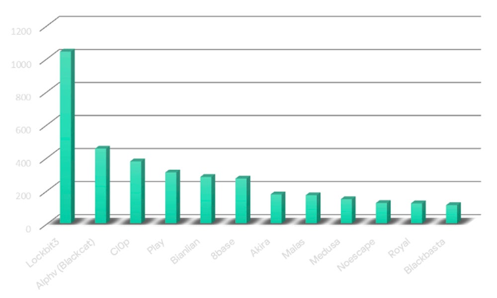 Most active ransomware families by number of victims in 2023. Image: Kaspersky