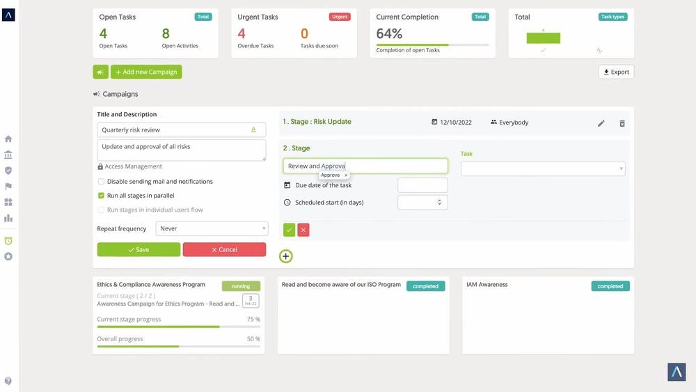 StandardFusion earned its place on this list by offering features that reduce the effort required for teams to manage their governance, risk and compliance while supporting their business’ expansion. It supports global business growth with scalable features available across different industries and locations.