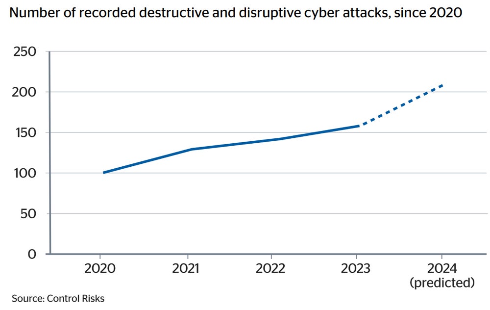 The data for the report was collected by the consultancy Control Risks. They indexed a selection of “strategically important” open-source and incident response cases rather than data loss or simple device compromise type incidents.