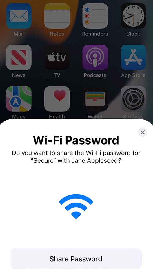 An example of a Share Password pop-up notification on an iPhone. Image: Apple