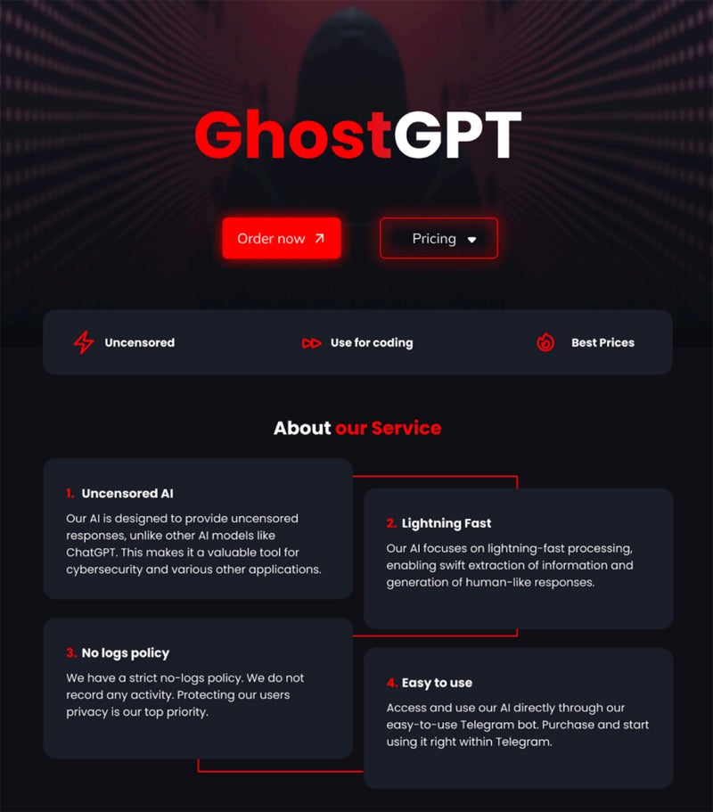 The security researchers found an advert for GhostGPT on a cyber forum, and the image of a hooded figure as its background is not the only clue that it is intended for nefarious purposes. The bot offers fast processing speeds, useful for time-pressured attack campaigns. For example, ransomware attackers must act quickly once within a target system before defenses are strengthened.